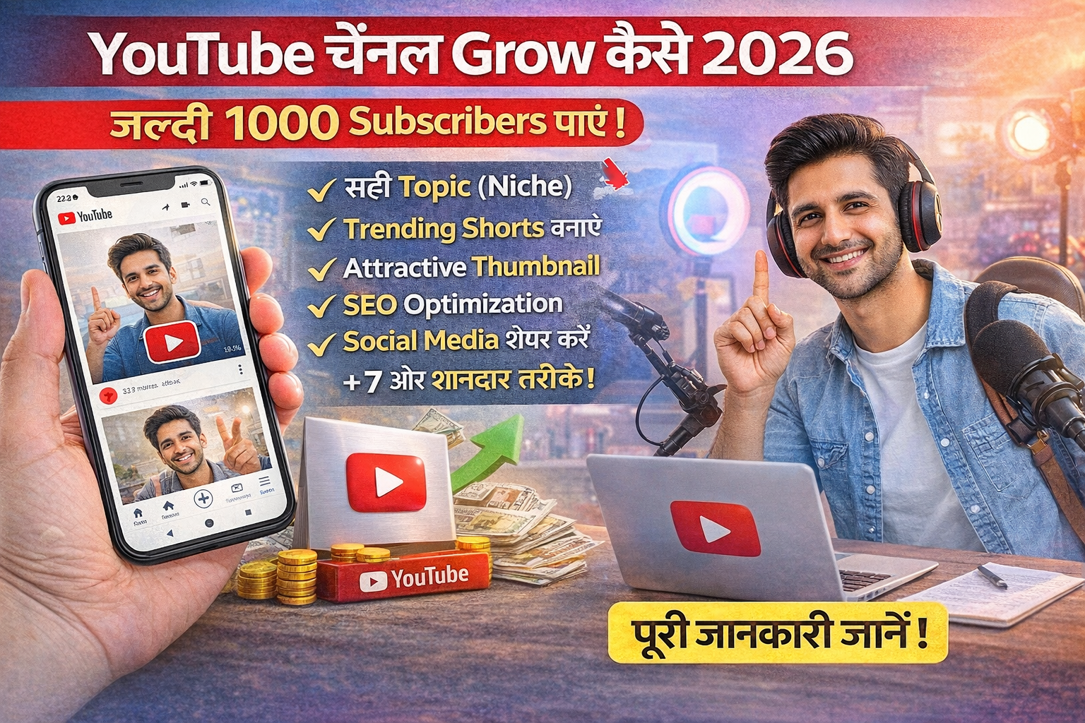 YouTube Channel Grow कैसे करें 2026: 12 आसान तरीके (1000 Subscribers Fast)